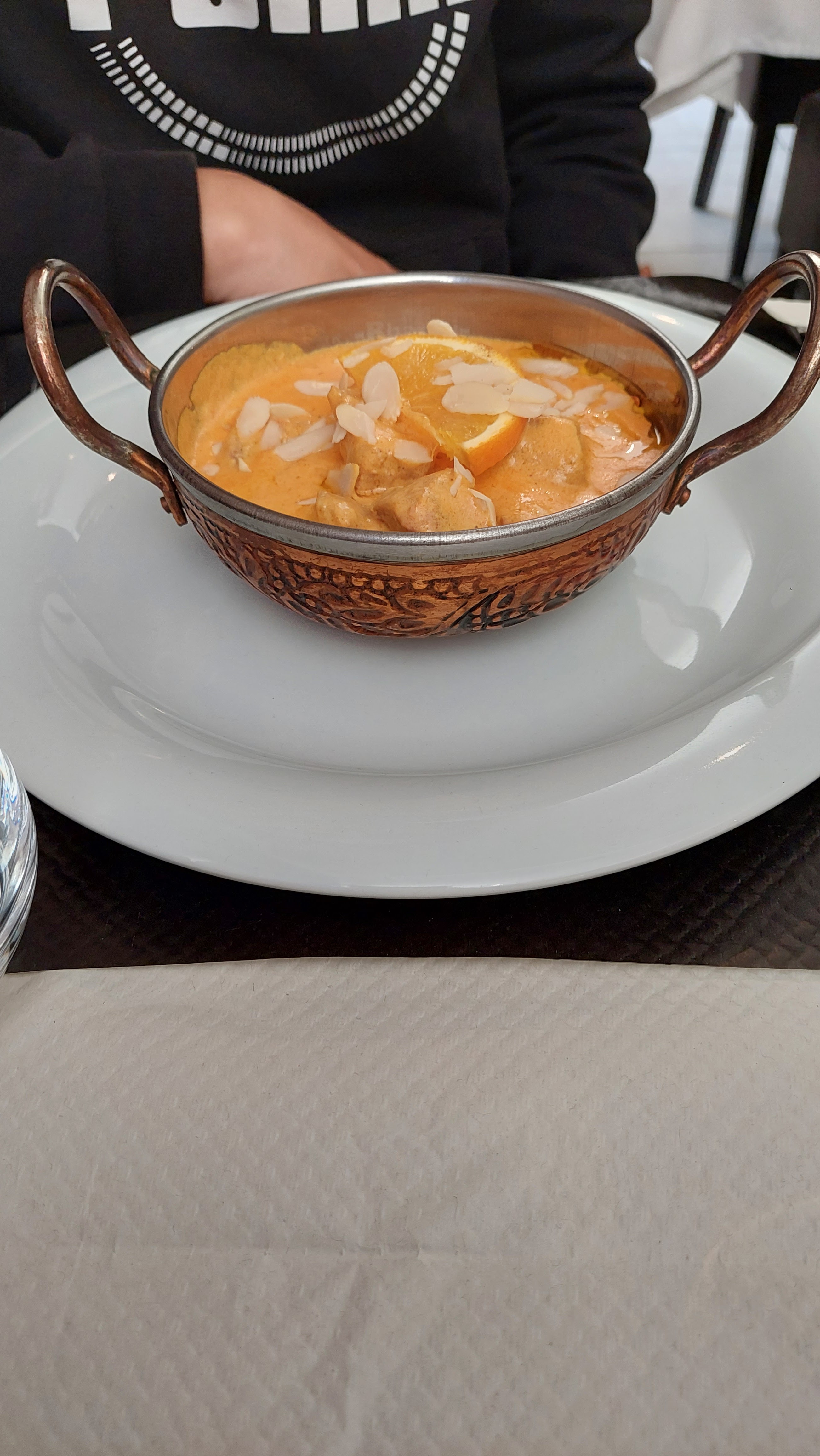 Nous avons été enchanter de découvrir ce restaurant original, où l'accueil a été très sympa mais surtout où la cuisine nous a enchanté par ses doux parfums. Deux menus enfants, et pour un des adultes, en entrée, garlic nan et bœuf Masala et pour moi poulet dopiaza (j'ai adoré)avec un riz parfumé au safran, le tout, succulent !!!! Servi dans des jolis plats. Rapport qualité prix et portions dans l'assiette, parfait. Précipitez vous, vous ne serrez pas déçus. Nous nous reviendrons très vite !!!!