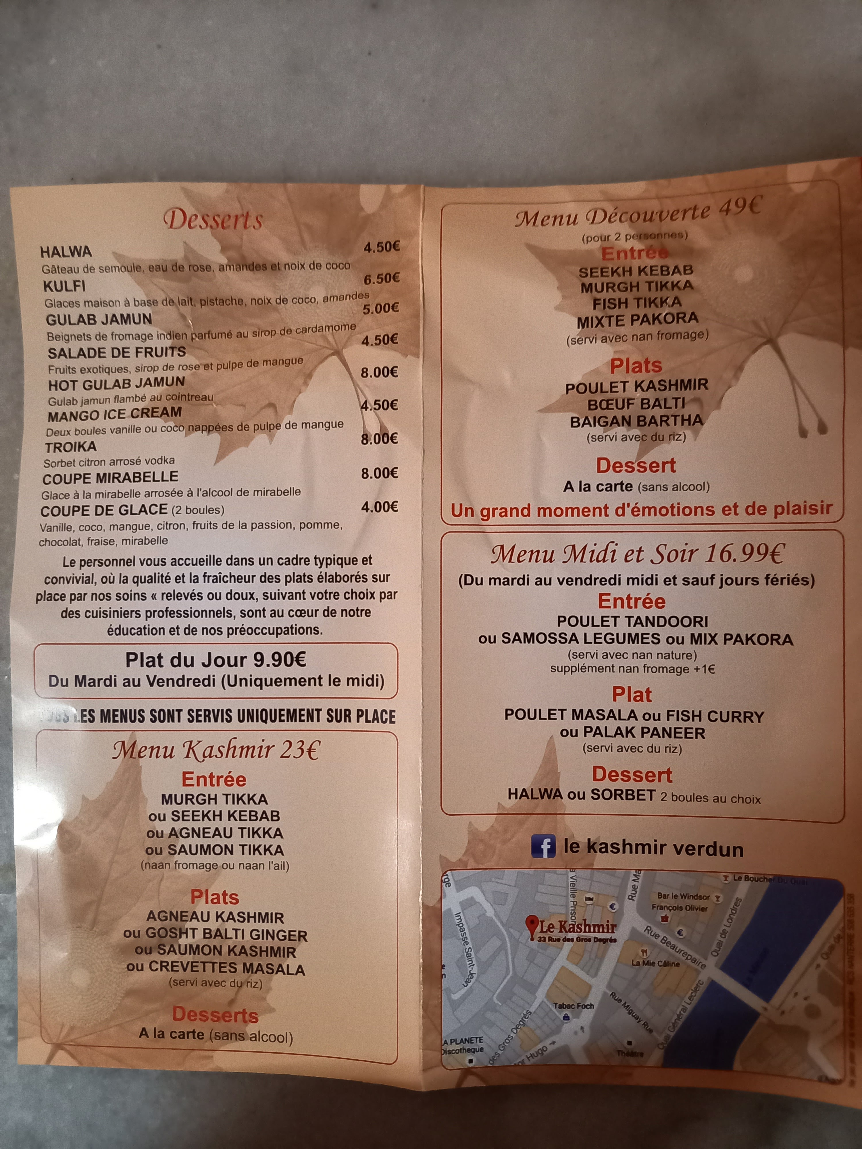 Plats de Saveurs et personnel très sympa.... prix abordable, je recommande.... merci le Kashmir....