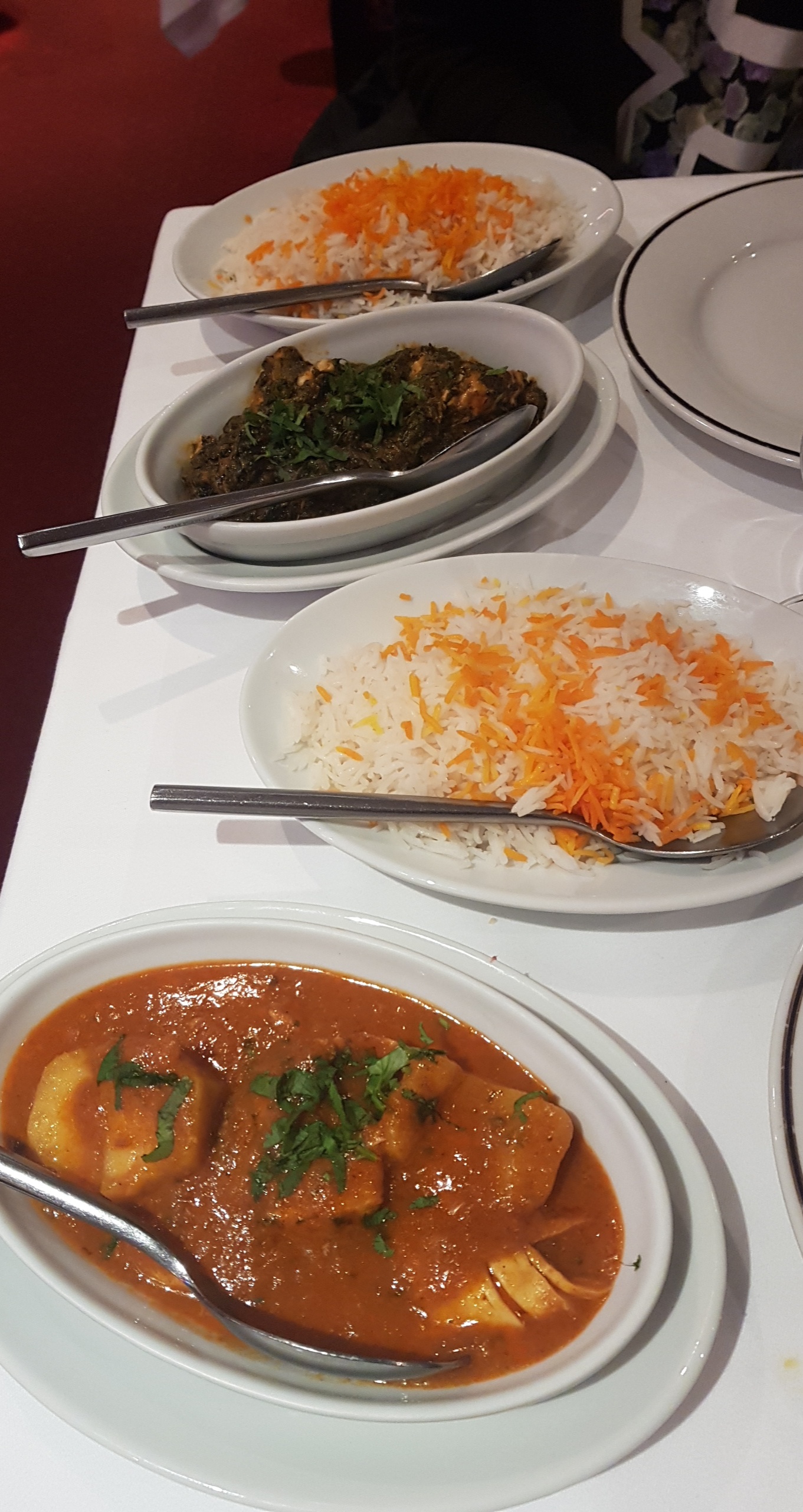 Cheese naan correct ,les samoussas très bons, le butter chicken je recommande aussi, par contre je prends un vindaloo qui est censé être relevé il ne l'était pas du tout, on aurait dit qu'il était cassé avec de l eau j'ai pas aimé le goût.