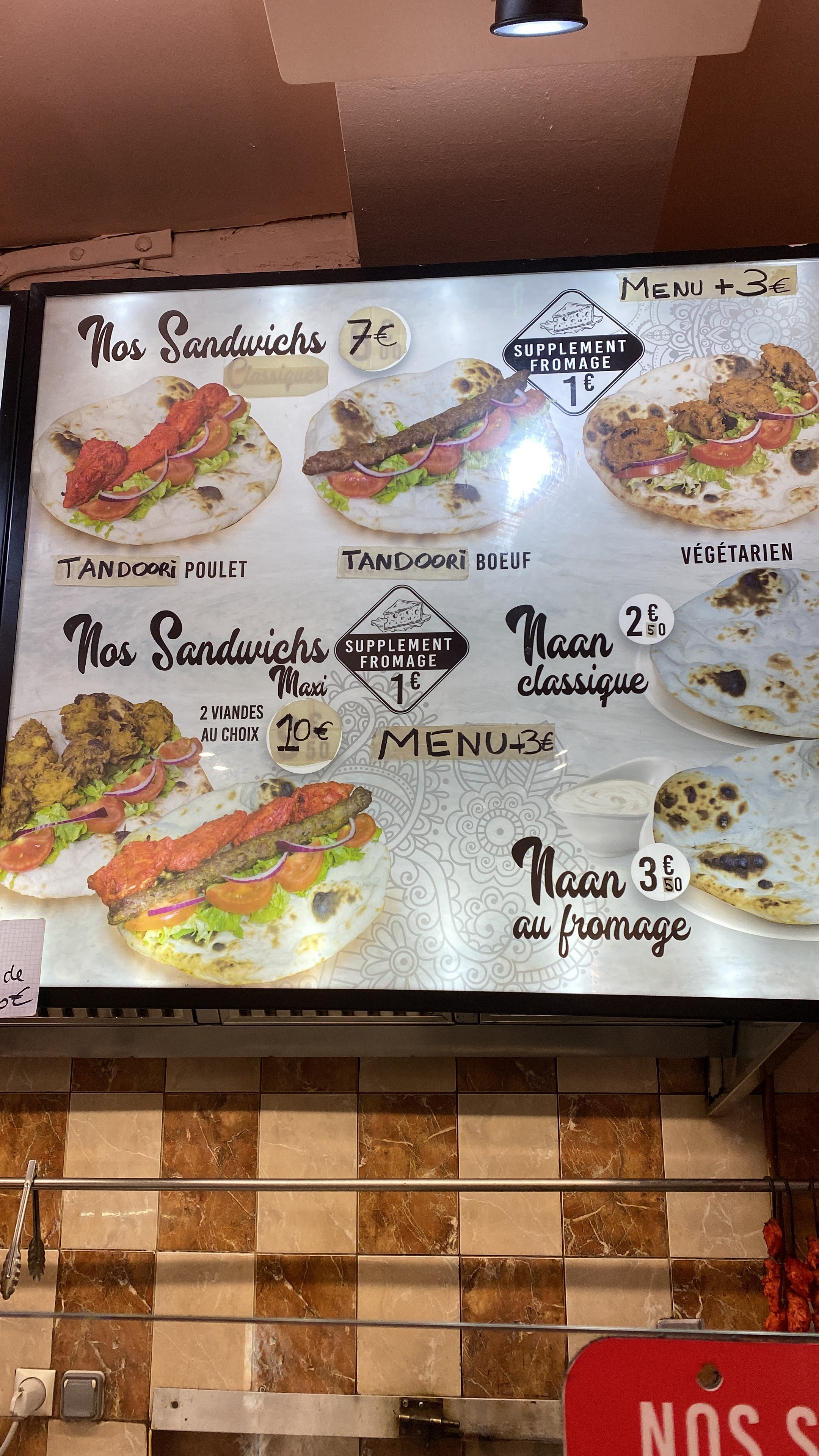 Superbe découverte. Nourriture excellente, serveurs adorables et prix très abordables. 22€50 pour un menu tandoori (sandwich /boisson et frites maison)et un sandwich tandoori végétarien et une boisson. Je recommande cet établissement pour manger sur le pouce, vite et bien!