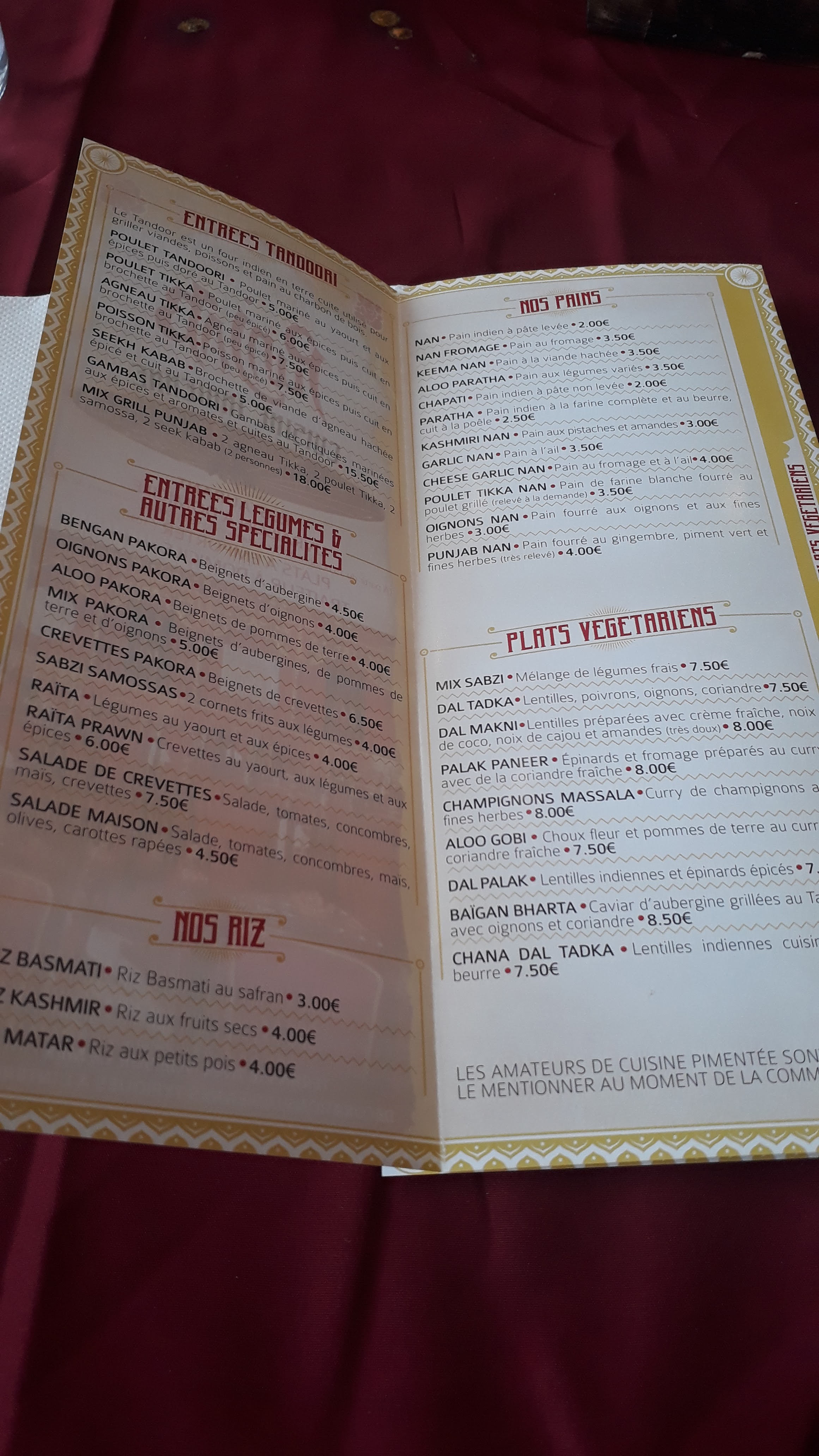 Tres tres bon restaurant indien le patron et le personnels très sympathique pour 30 euros vous avez l apéro entrée plat dessert boisson et pain au fromage