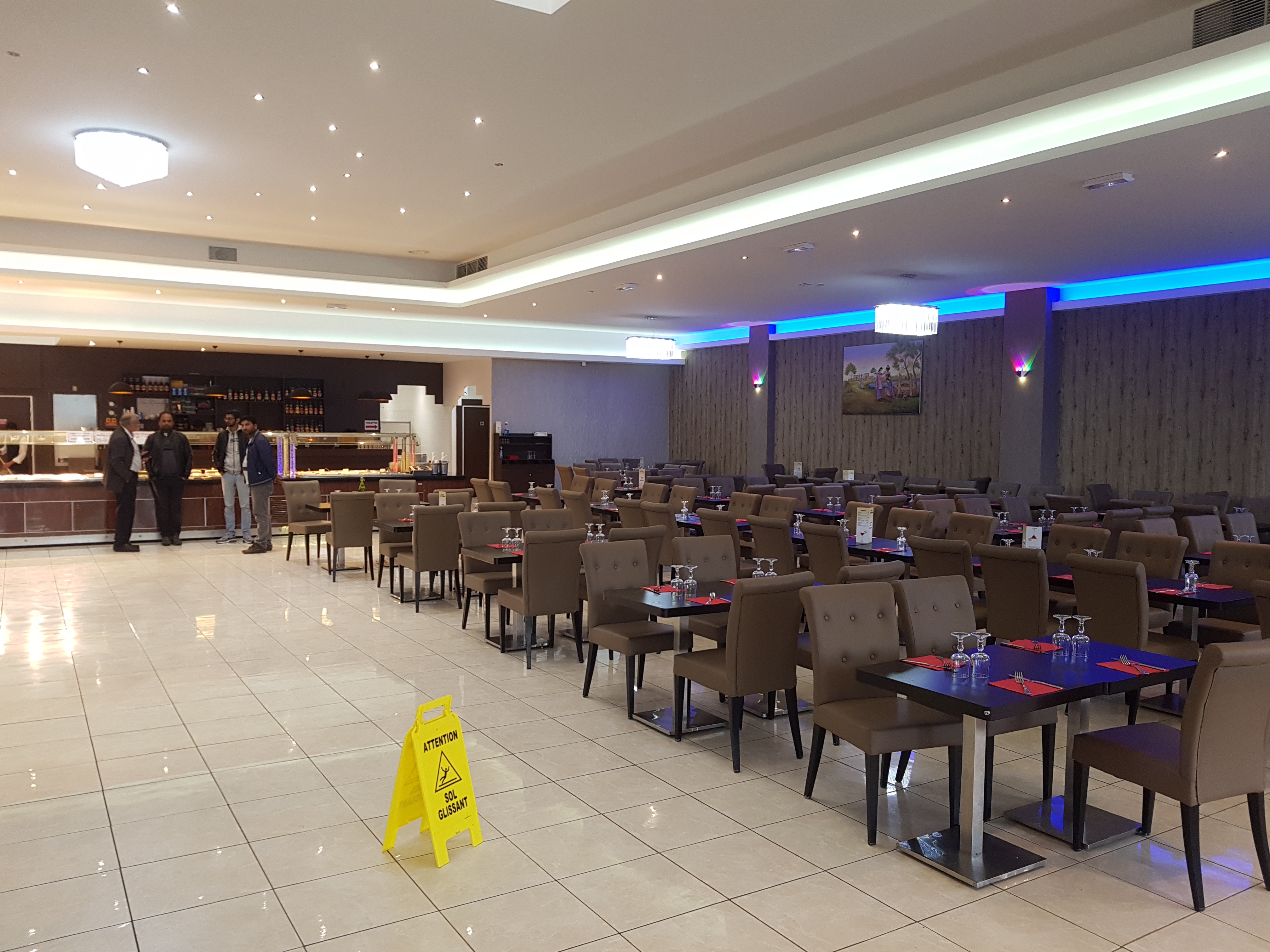 tres bon repas pas beaucoup de choix de riz indiens ,le personnel pas chaleureux Restaurant spacieux