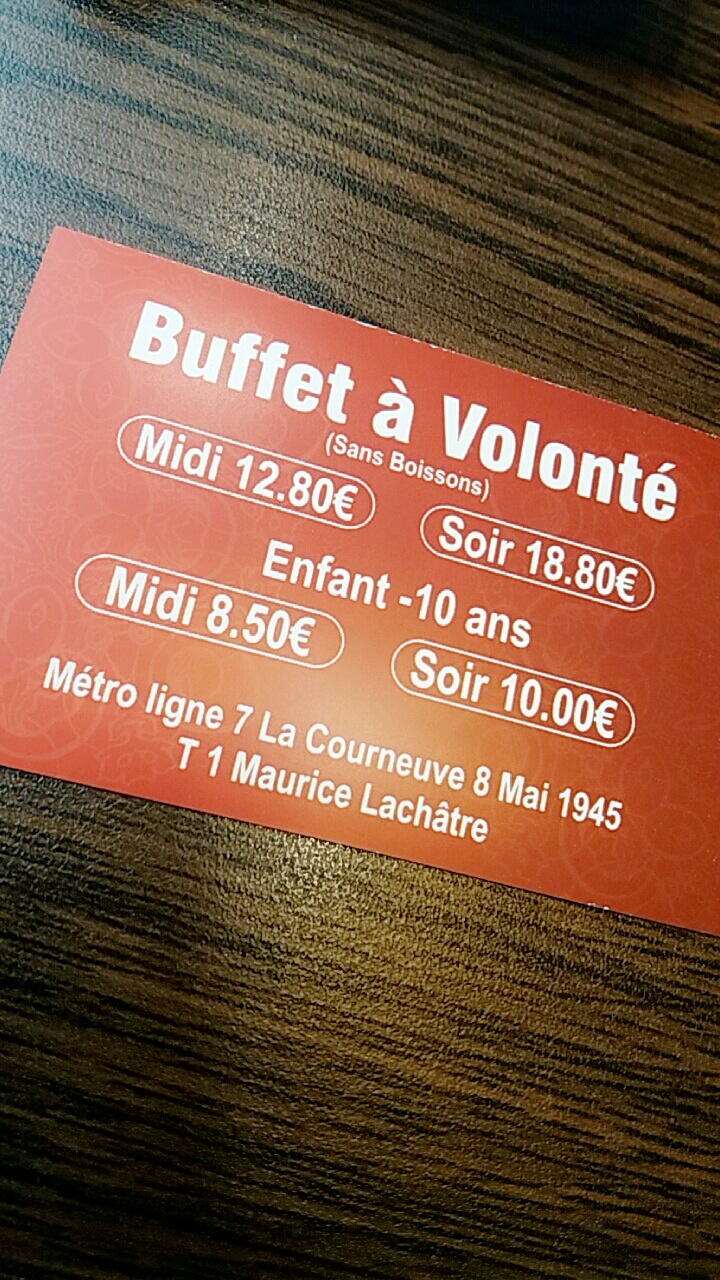 J'ai découvert ce restaurant à buffet à volonté ce soir et je me suis régalé! Je vous recommande cette endroit.